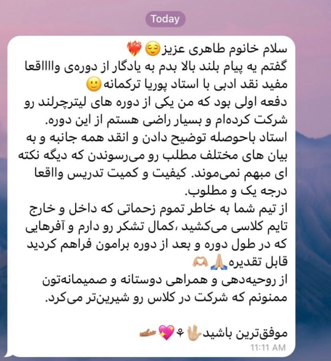 دوره نقد ادبی در ۱۸ جلسه توسط دکتر پوریا ترکمانه برای اولین بار توسط آکادمی Literature Land برگزار شد.