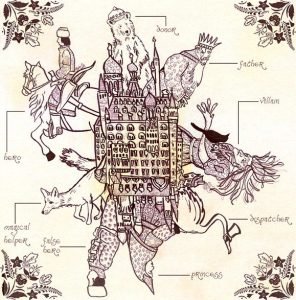 The Father-King wills to determine the fate of the inheritance of his kingdom for after he passes away. His first son, second son, and Simpleton- the third son- he sends on a journey. Now, this initiating part of the story in Propp’s terminology would be Absentation: The members of the younger generation, on whom the story here is focused, absent themselves, or rather, make themselves scarce from the safe zone they initially inhabited.