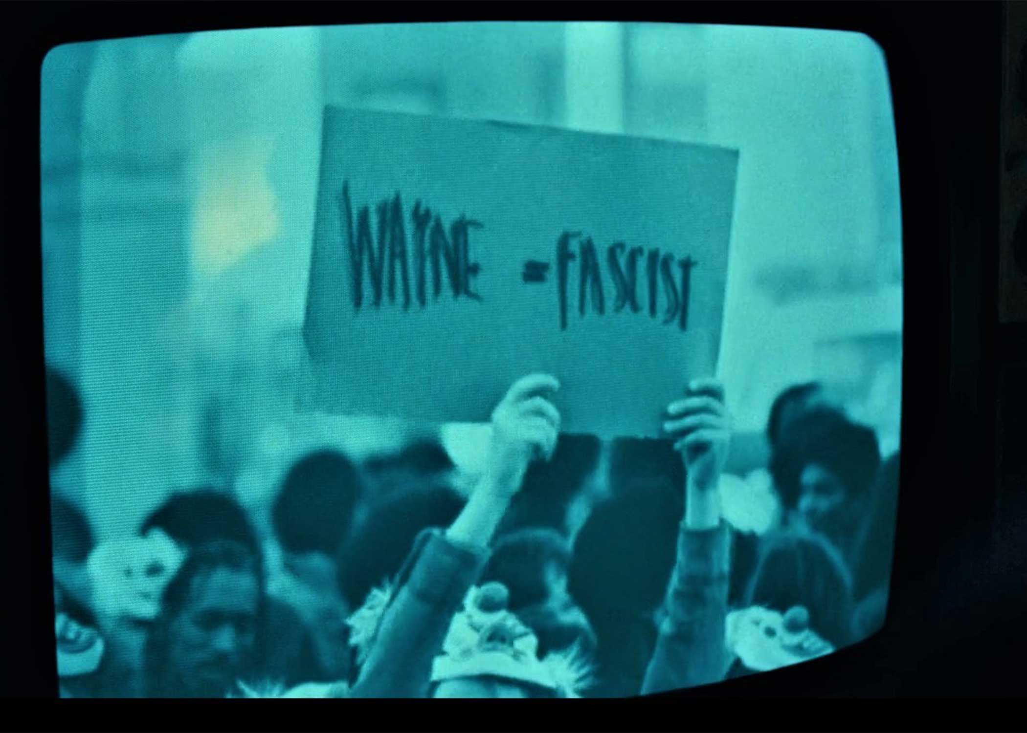 A signs held by a protester in the film which implies the similarities between populists and fascists.